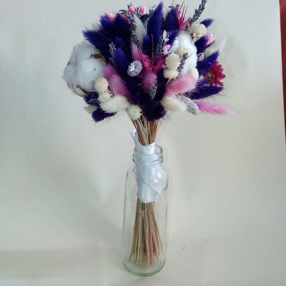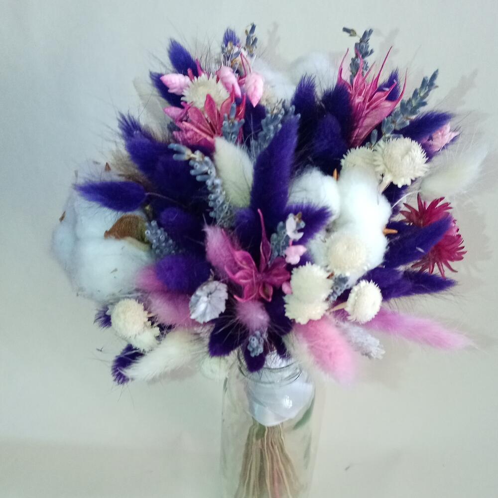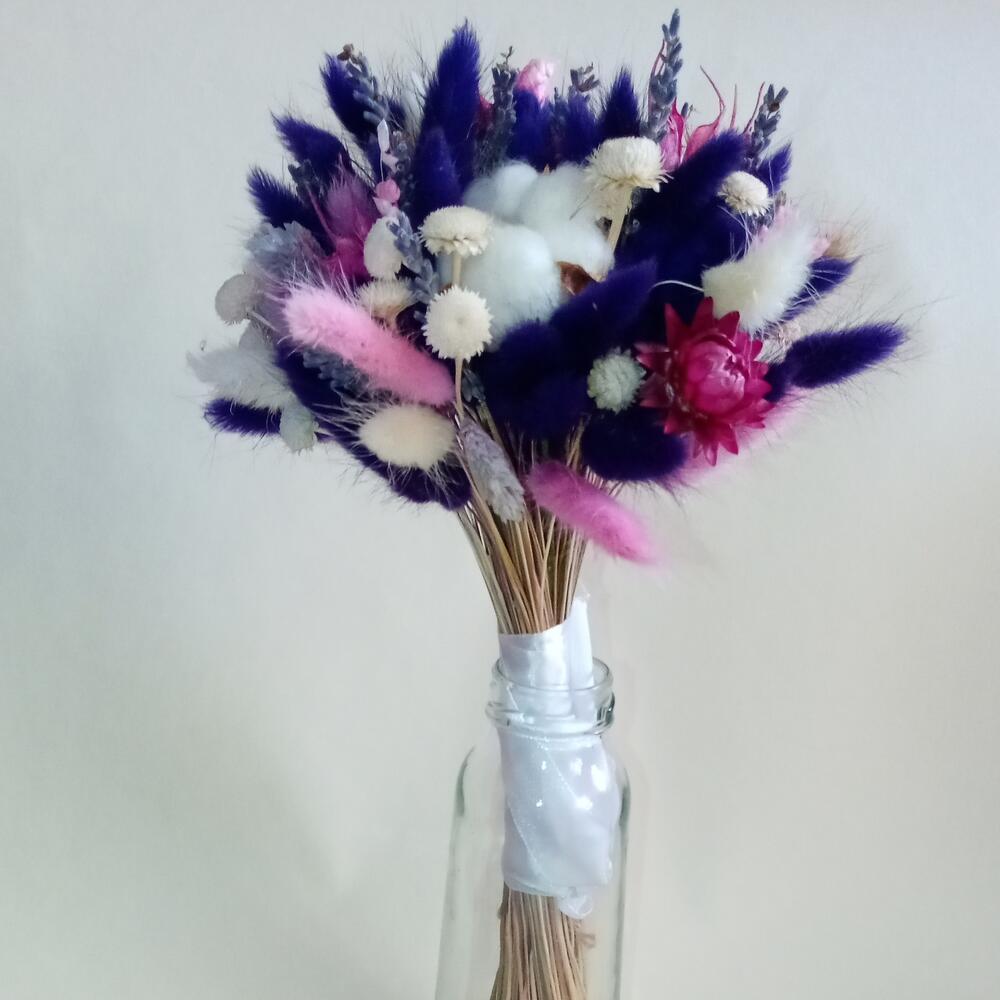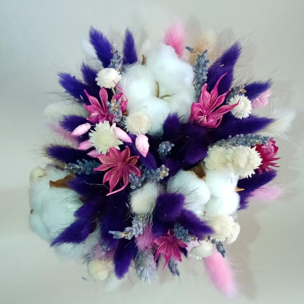Лаванда (сухоцвет) – 12 шт. Лента атласная – 1 шт. Лагурус – 50 шт. Нигелла сухоцвет – 4 шт. Хлопок натуральный – 3 шт. дриза – 3 шт. гелизризум – 1 шт.