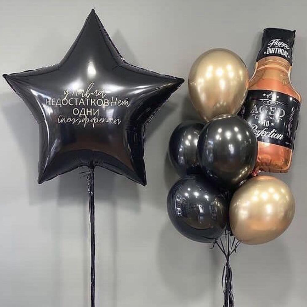 Набор состоит из большой звезды размером около 80см и фонтана:- фигура виски- 2 шара золото- 4 шара ассорти Цвет композиции может быть любым🤗