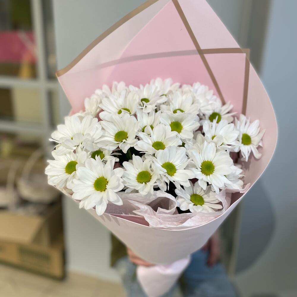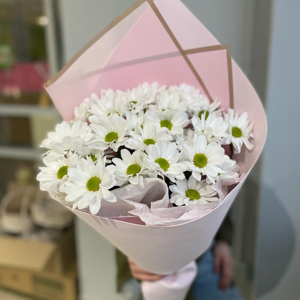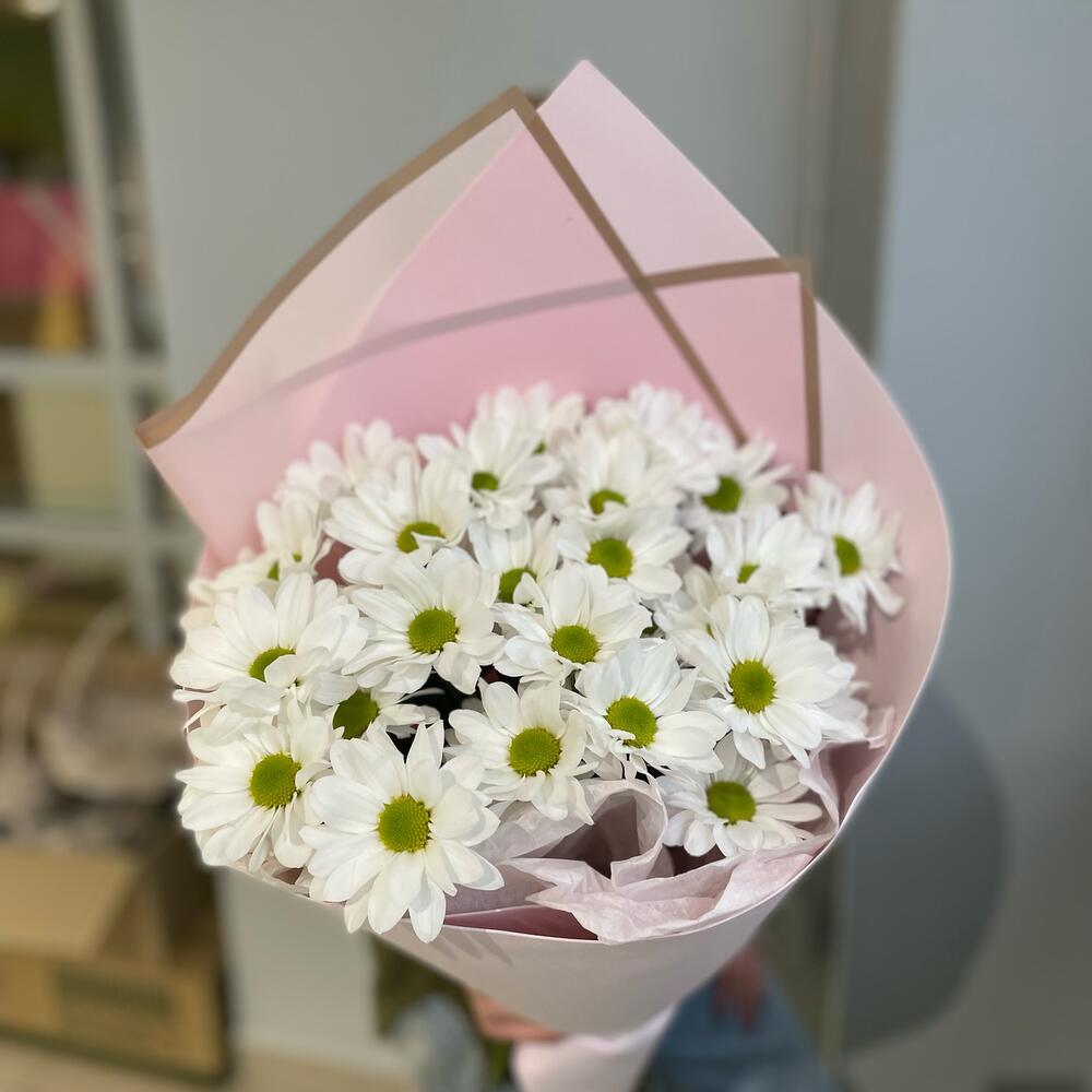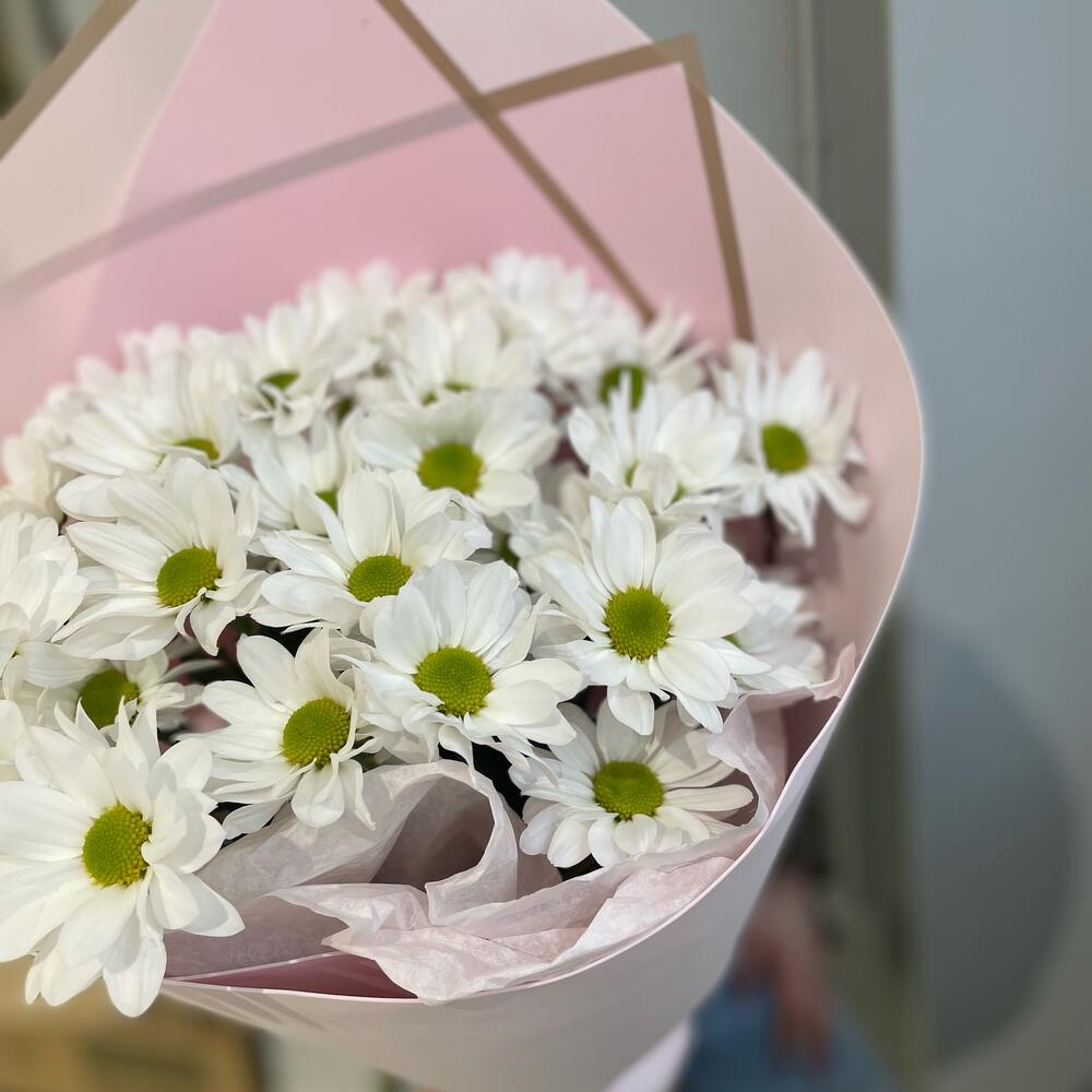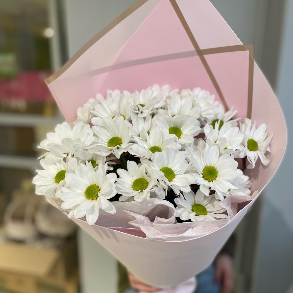 Дизайнерская упаковка – 1 шт. ромашка хризантема кустовая – 5 шт.