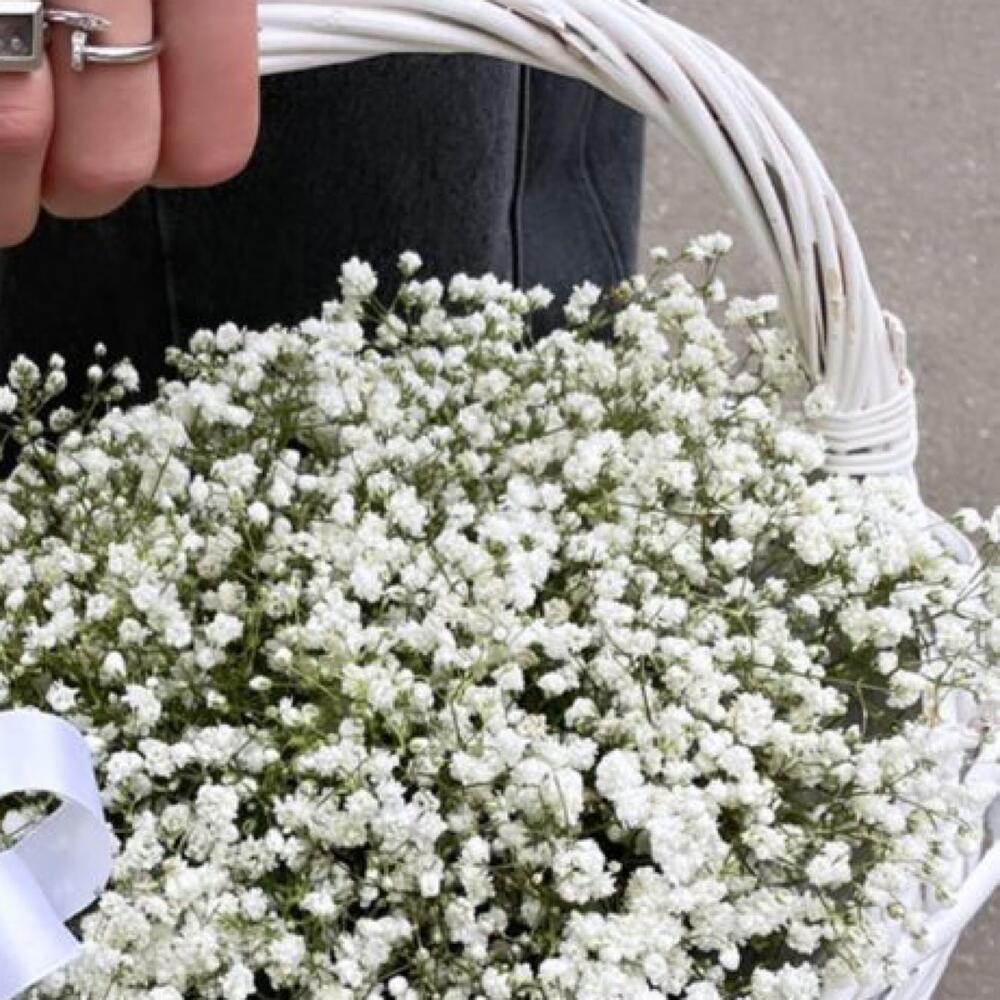 Гипсофила – 20 шт. Корзина плетеная – 1 шт. Оазис флористический – 2 шт.