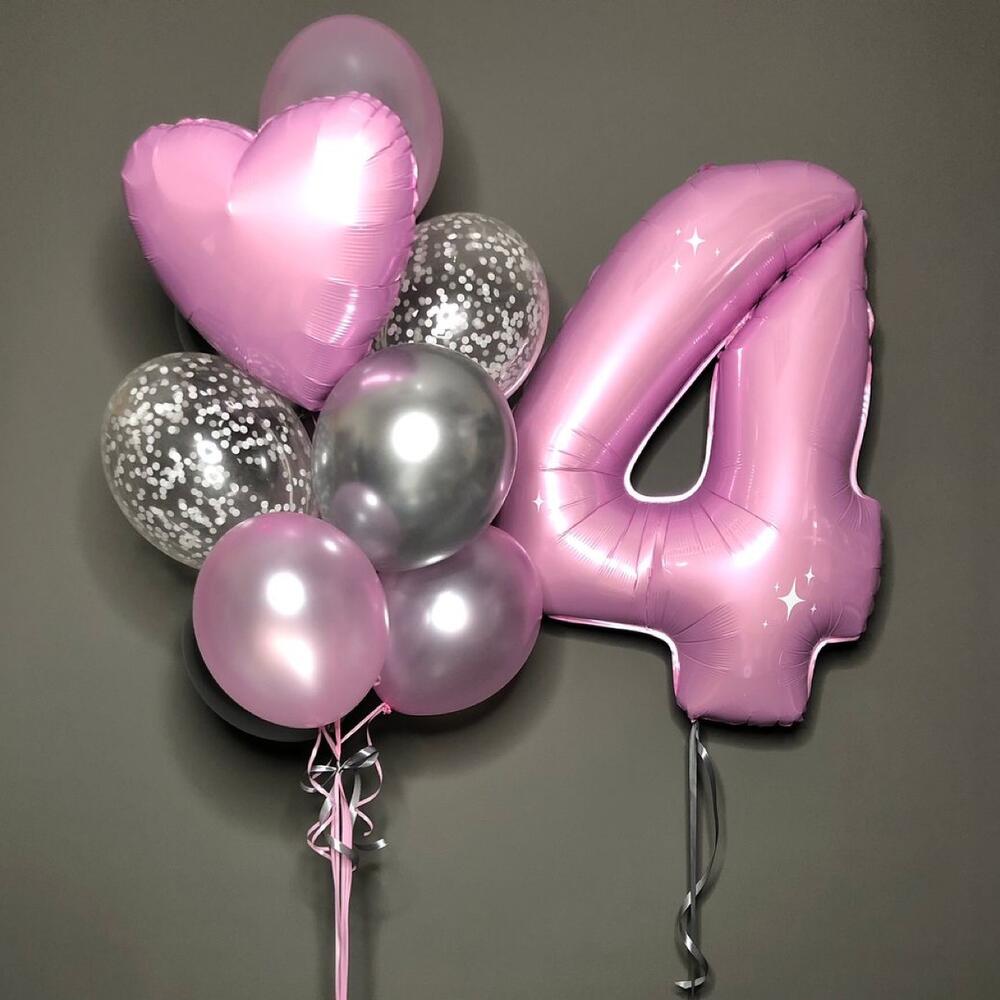 Набор состоит из нужной цифры и фонтана из 10 шаров:- 1 сердце фольгированное- 2 шара с белым конфетти- 3 шара хром серебро- 4 шара перламутр розовыеЦвет композиции может быть любым😉