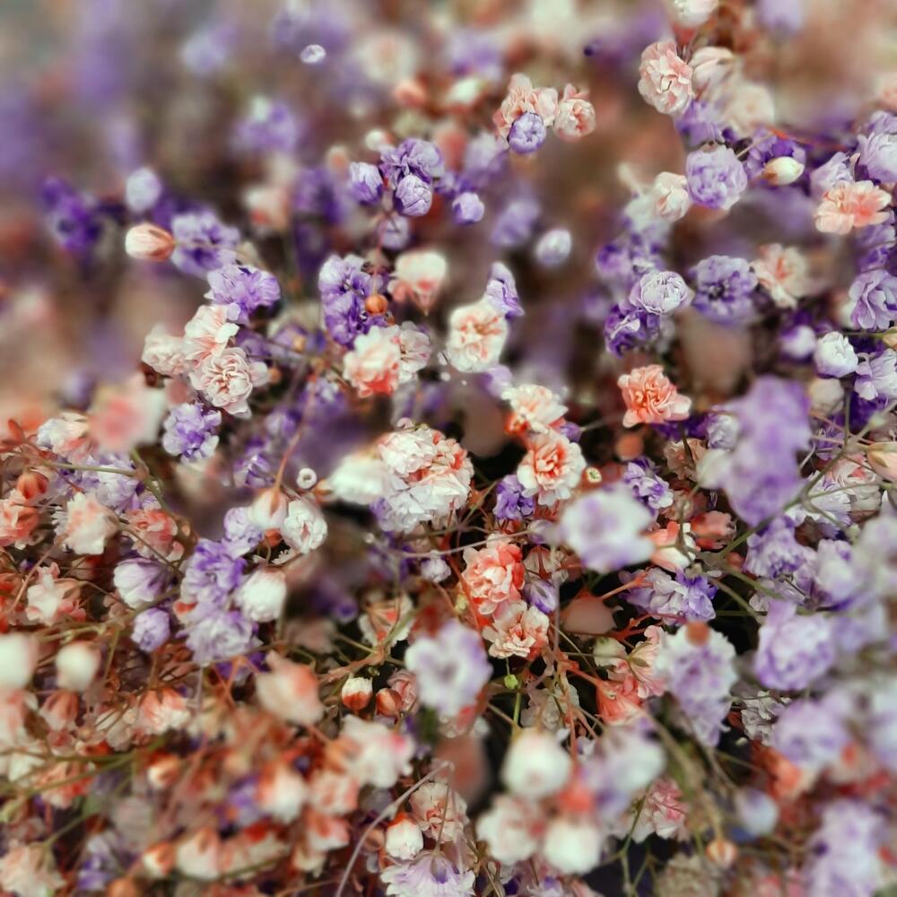 Лента атласная – 3 шт. Коробка шляпная – 1 шт. Оазис флористический – 1 шт. гипсофила радужная – 9 шт.
