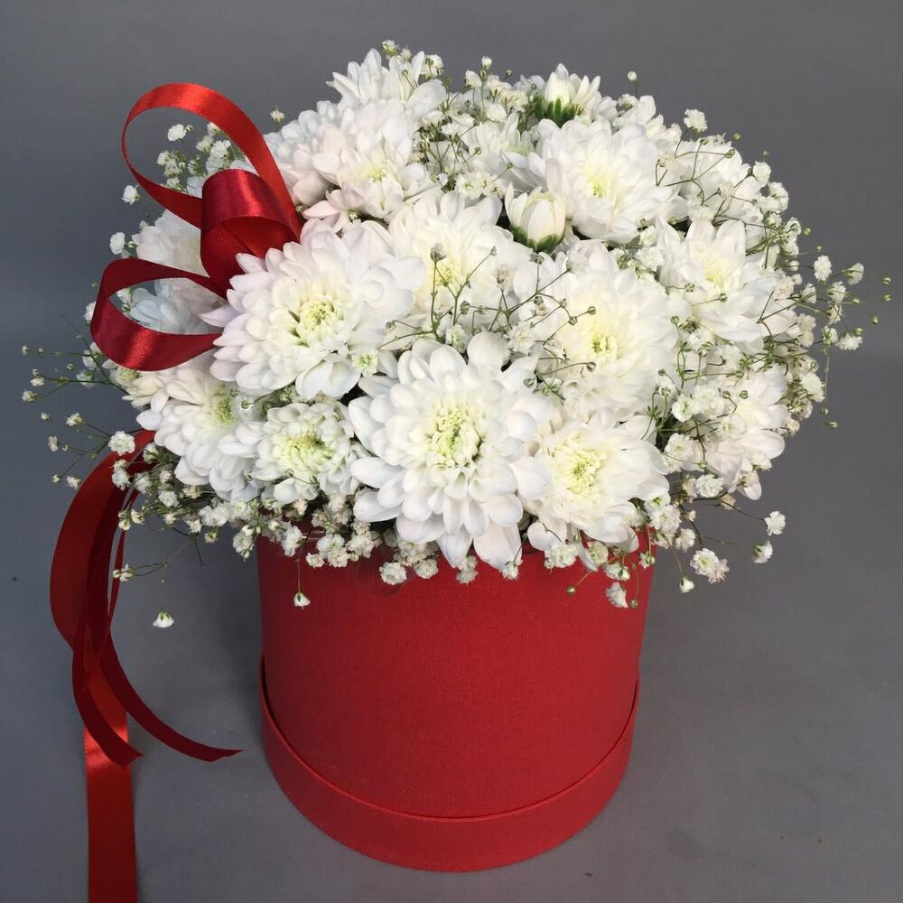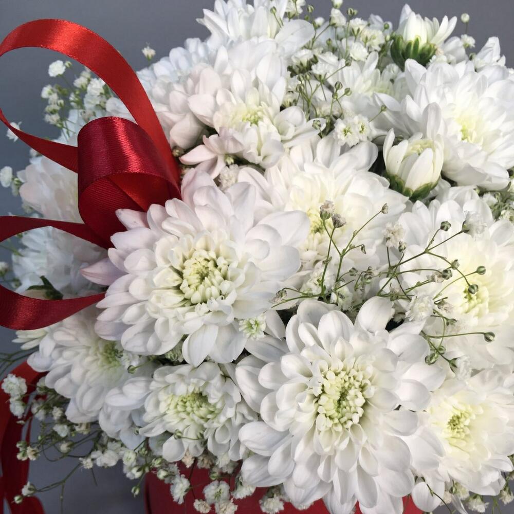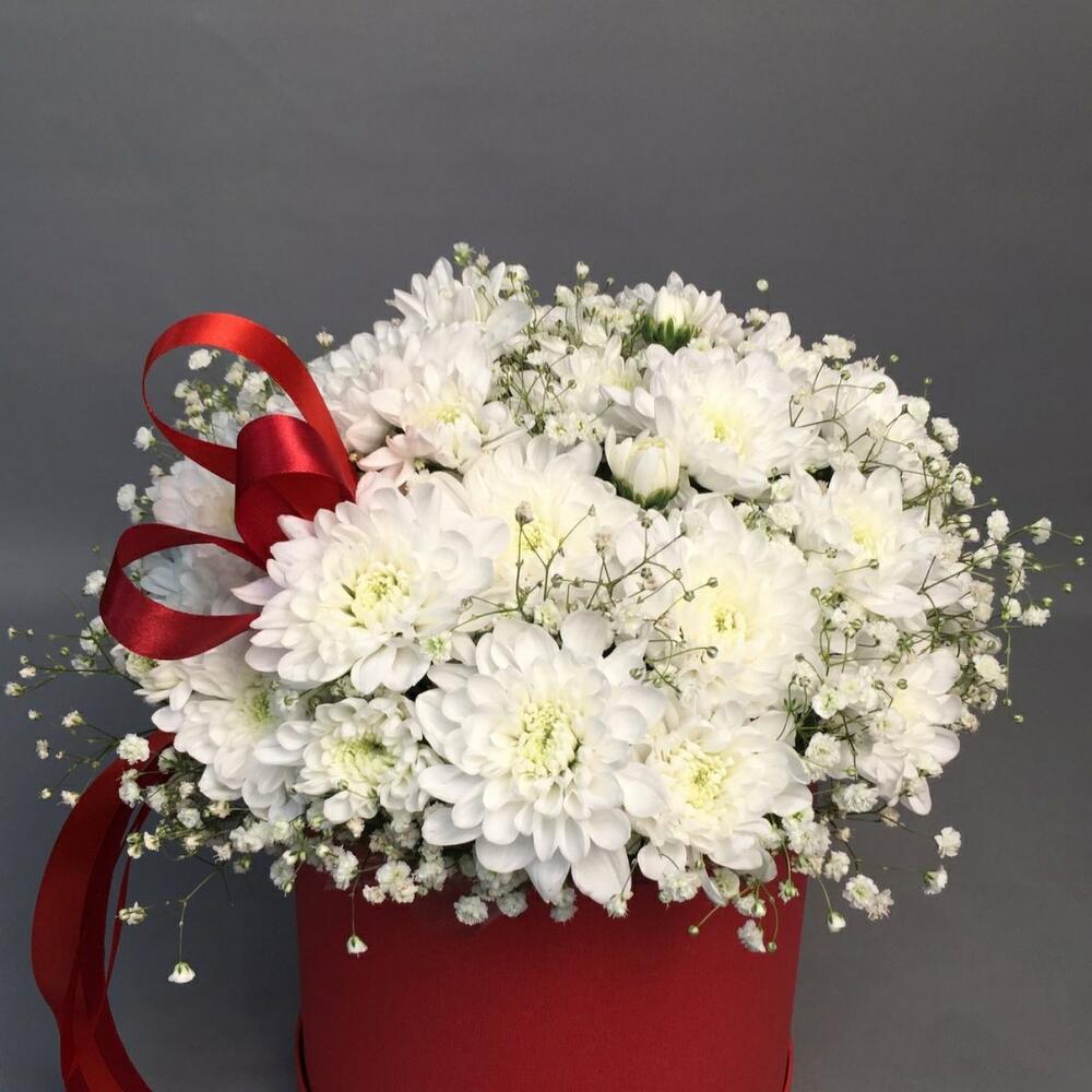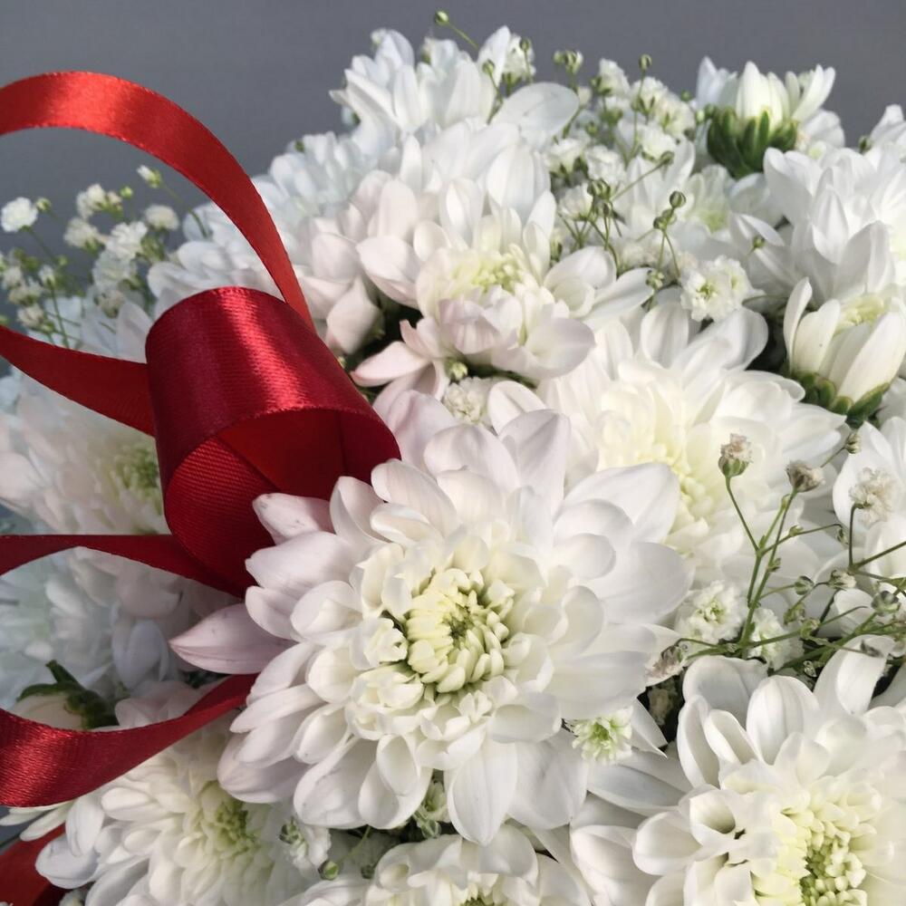 Гипсофила – 3 шт. Хризантема кустовая – 5 шт. Декор – 1 шт.