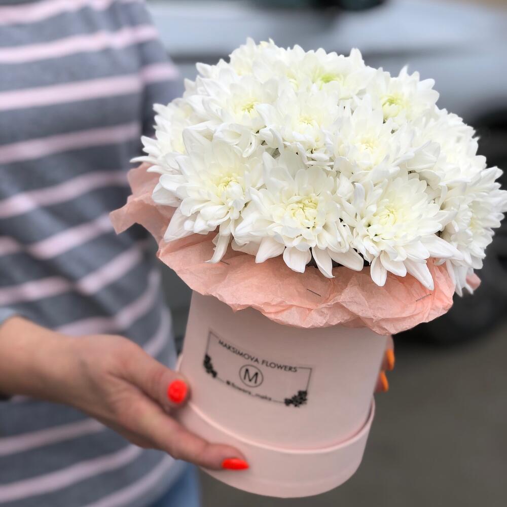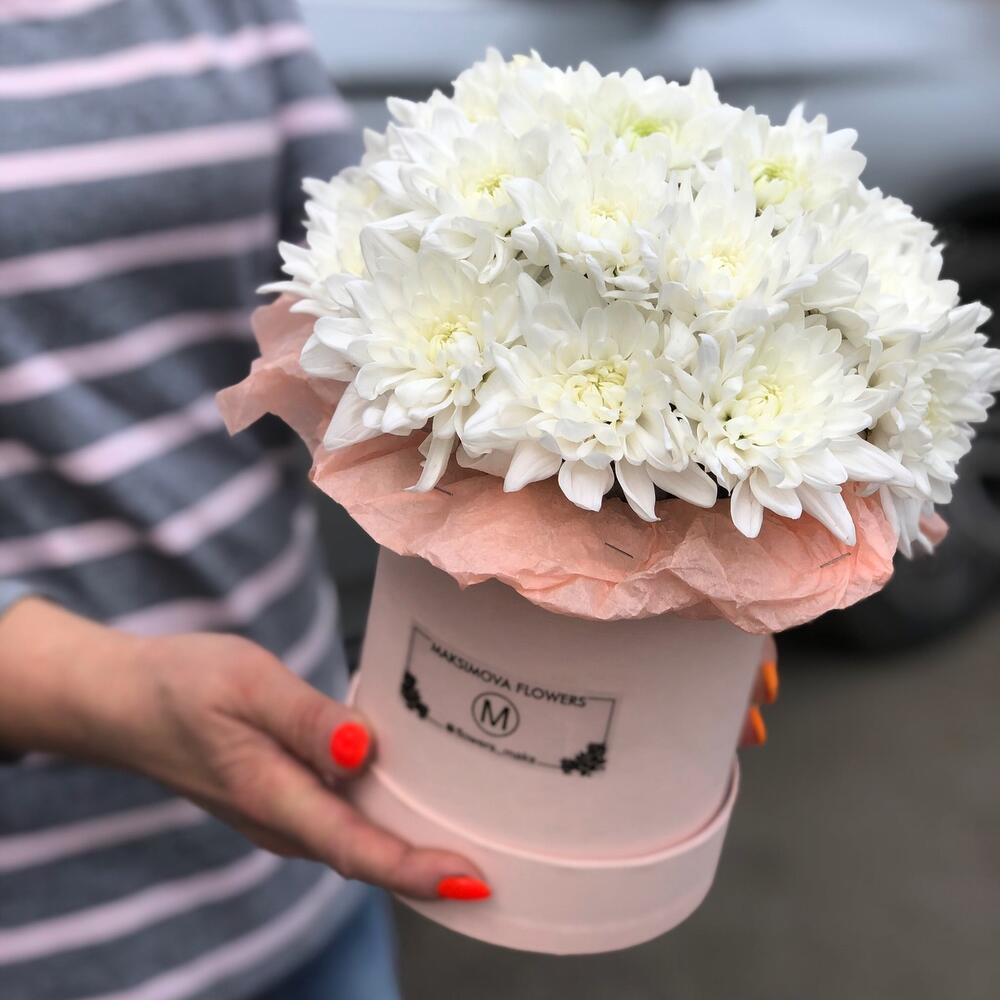 Хризантема кустовая - 7 шт. Коробка шляпная - 1 шт.