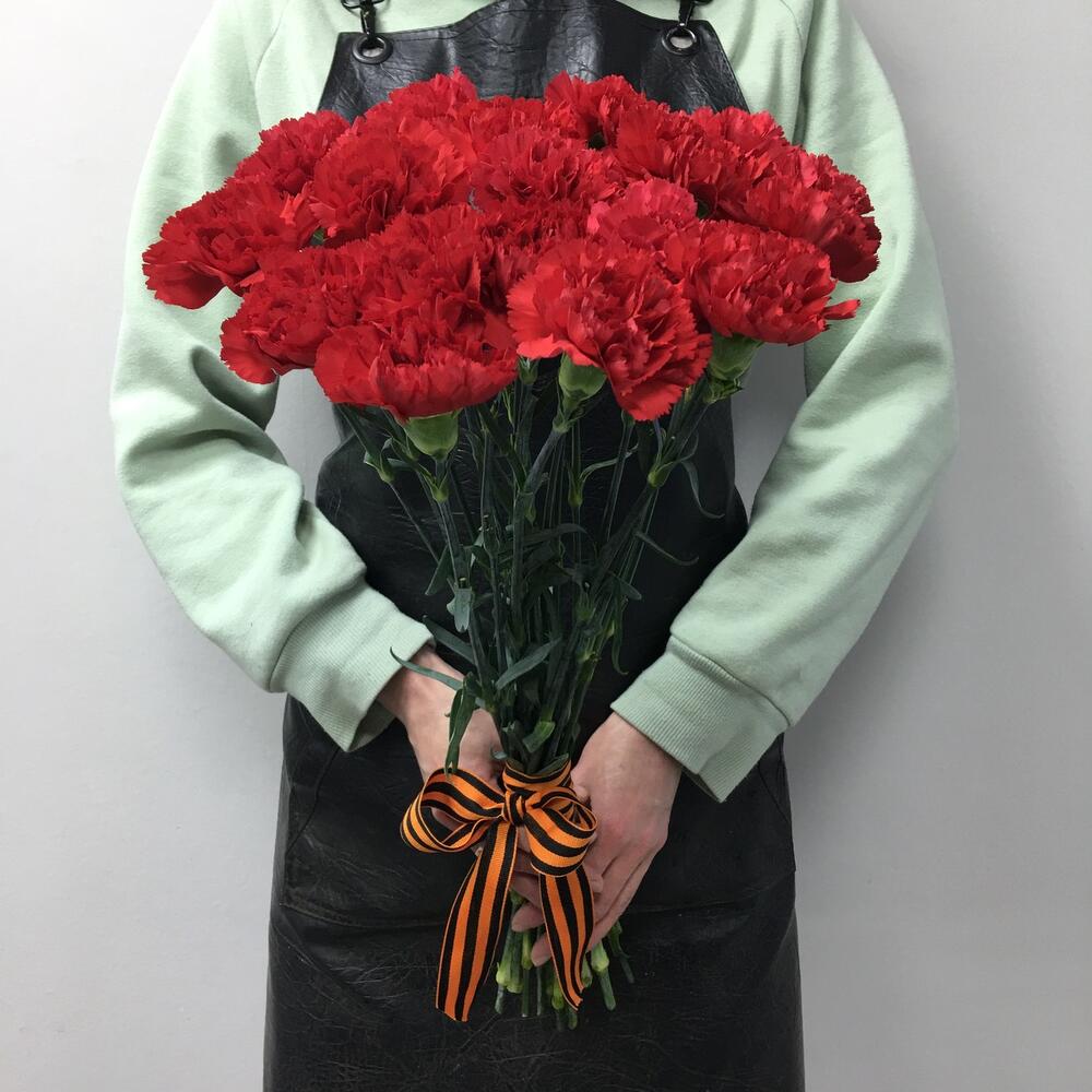 Гвоздика красная – 20 шт. Георгиевская лента – 1 шт.