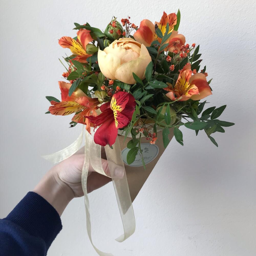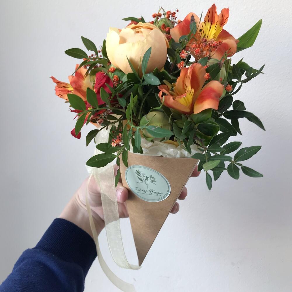 Мини композиция в конусе, в виде милого букетика, прекрасно подойдёт, как подарок с самого утра❤️🔥