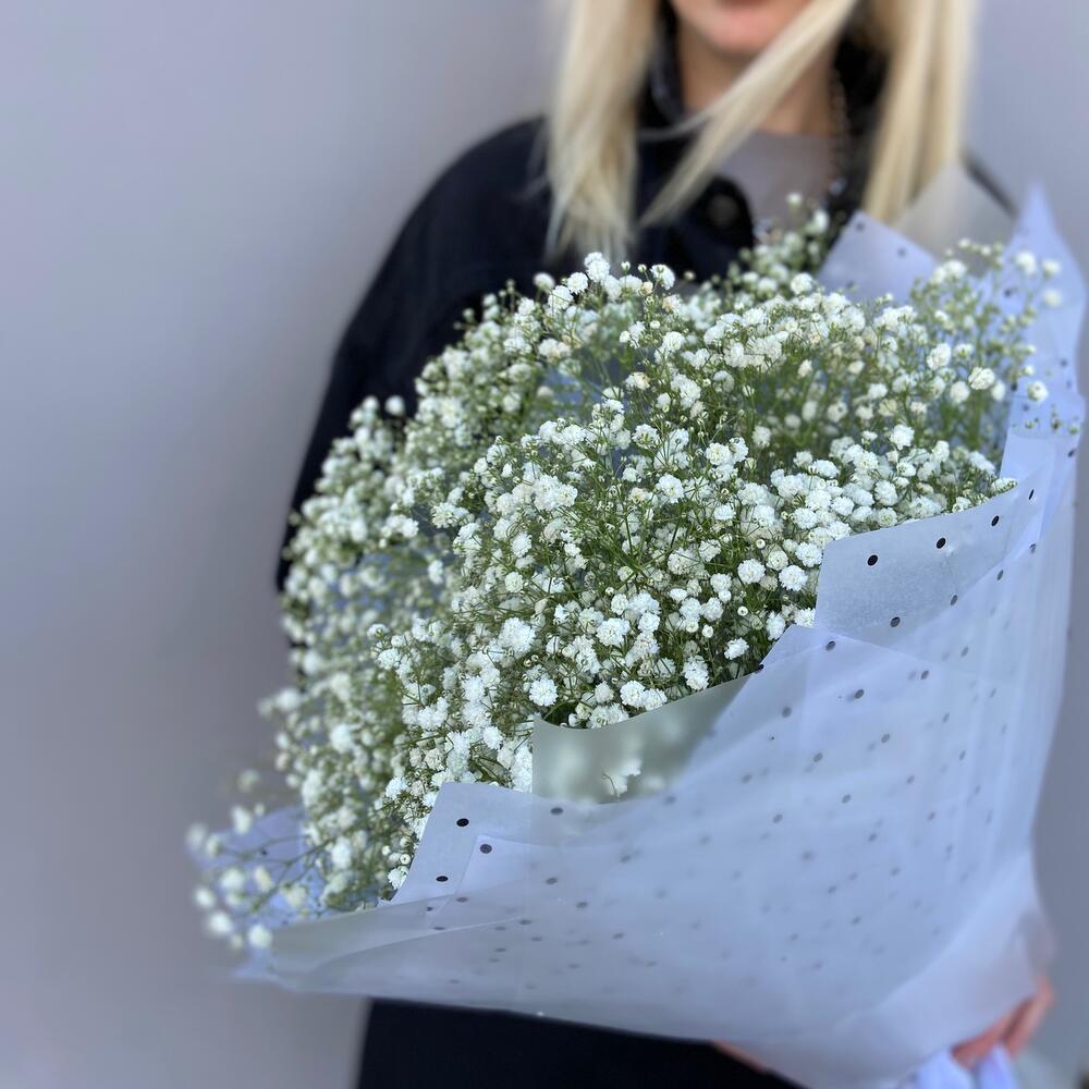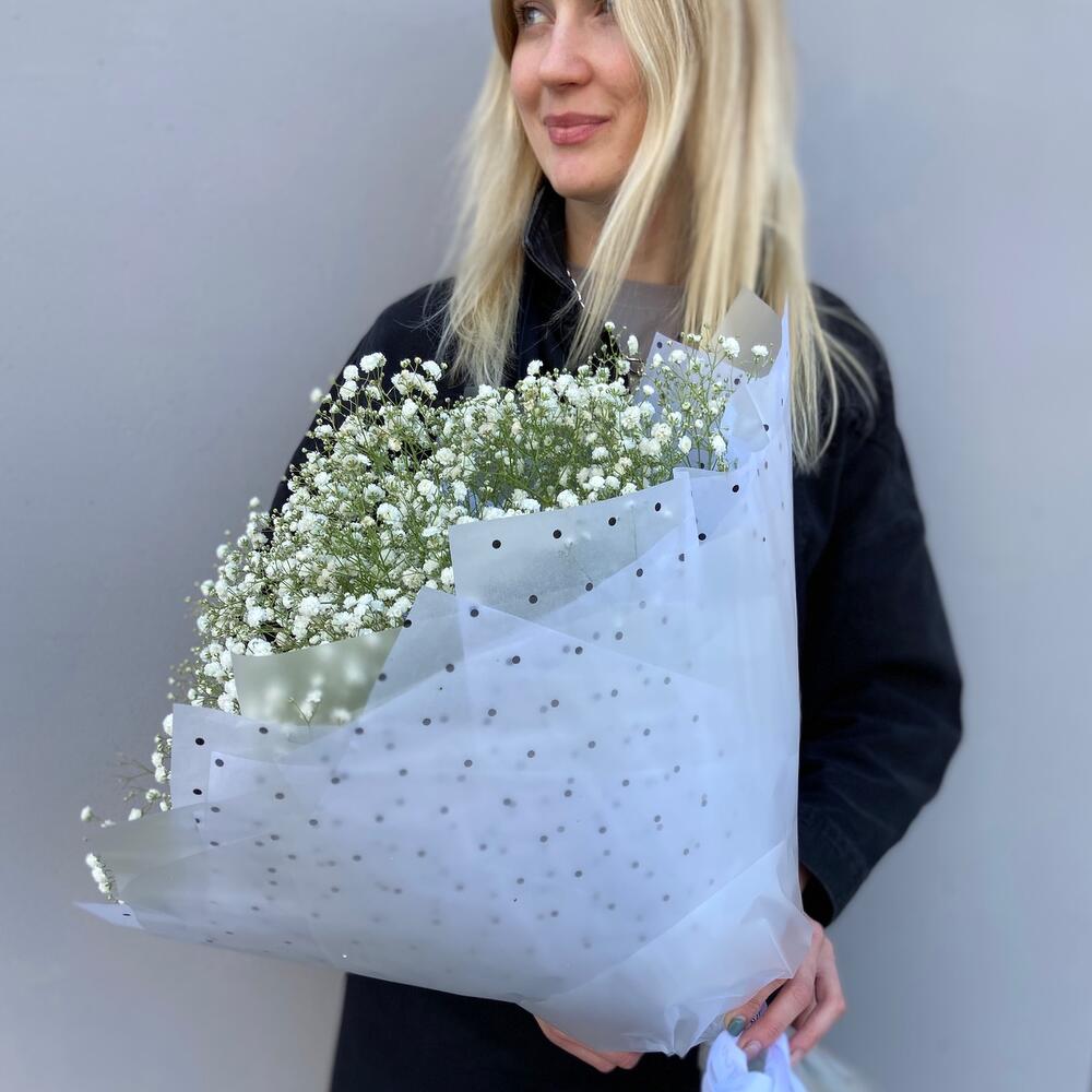 Гипсофила - 7 шт. Лента атласная - 1 шт. Упаковка дизайнерская - 1 шт.
