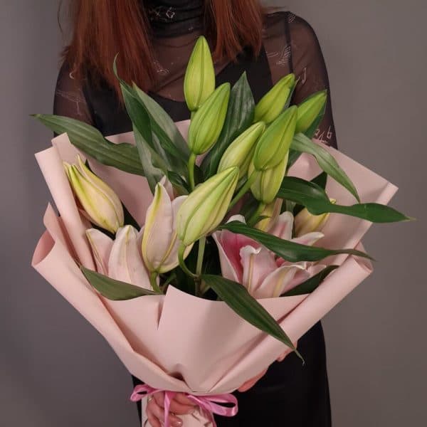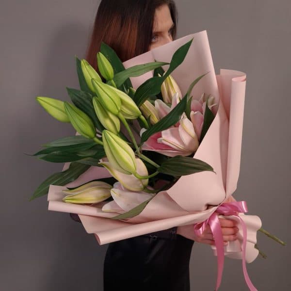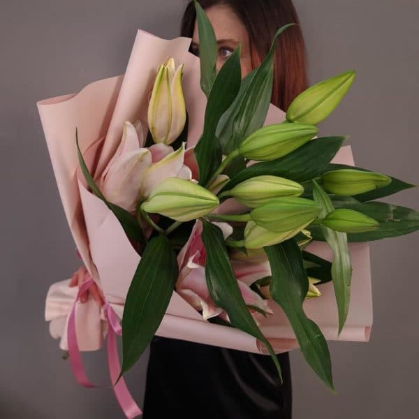 лилия альбарето – 3 шт.Упаковка – 1 шт.Аквапак – 1 шт.подкормка для срезанных цветов – 2 шт.