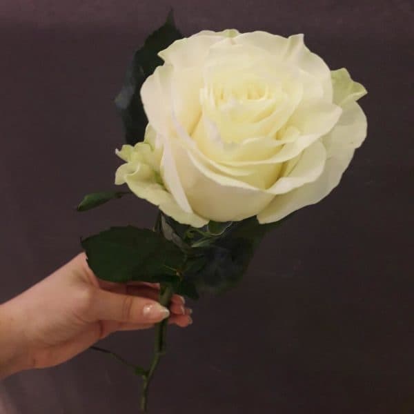 Одна из лучших среди белых роз! Сорт чайно-гибридных роз Мондиаль, 55 см. Очень стойкая. Цветы сливочно-белого окраса, немного зеленоватый цвет бутона внутри. Классический вариант подарка как для женщины, так и для мужчины. С любовью, доставка цветов Цветы Тут