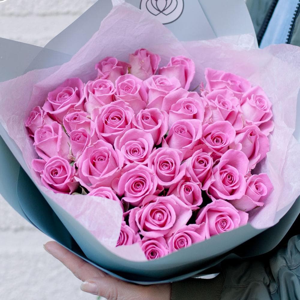 Доставка цветов в Москве—Букет из 35 розовых роз (Кения) 40 см Standart