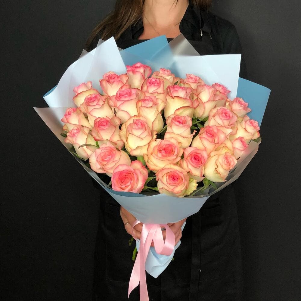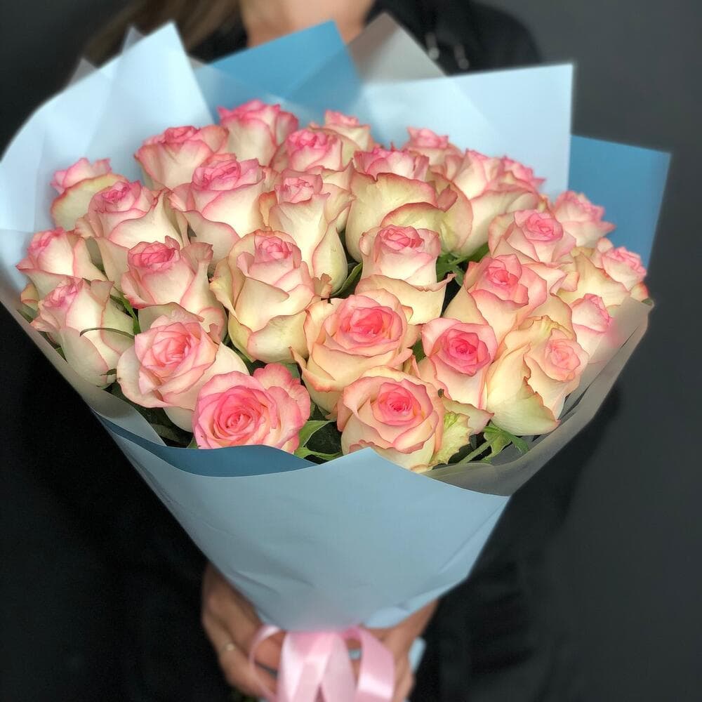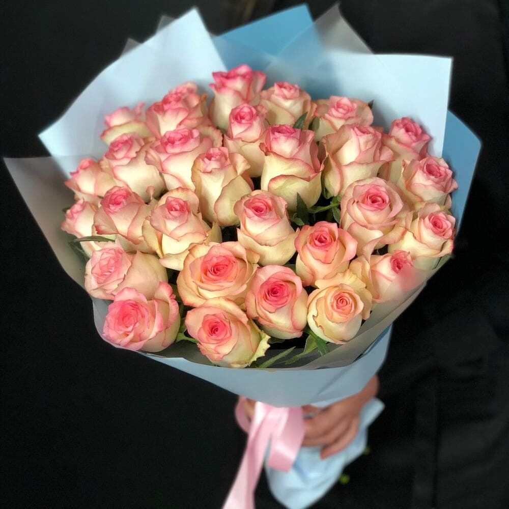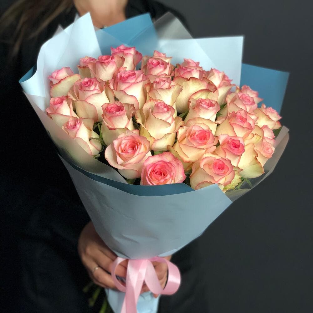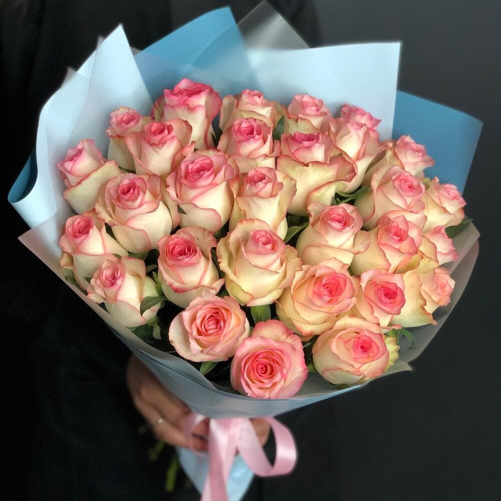 Нежные белые розы с розовым ободком в авторском исполнении С любовью, доставка цветов Цветы Тут