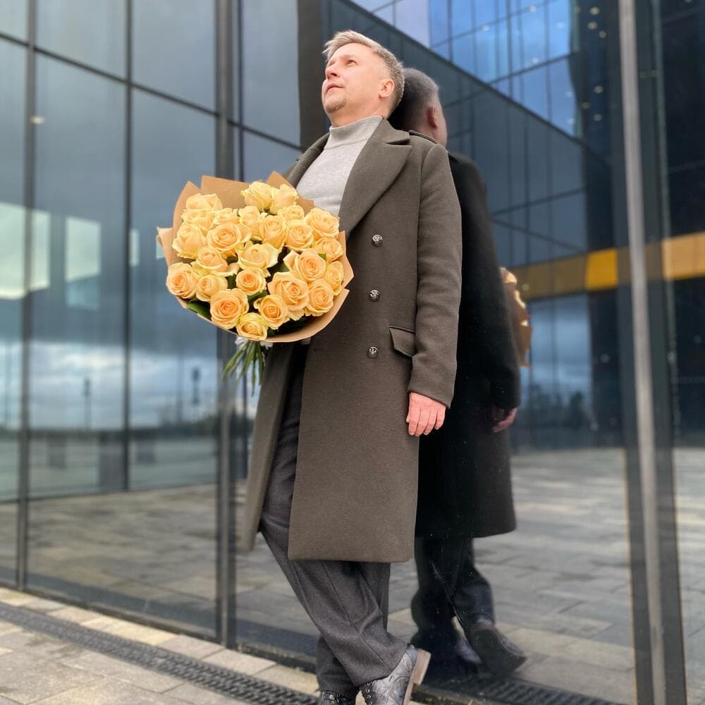 25 Кремовых роз Эквадор премиум 60смИзящный букет из роз, доставленных напрямую с эквадорских плантаций в Санкт-Петербург, чтобы радовать васи ваших близких нежным ароматом С любовью, доставка цветов Цветы Тут