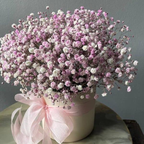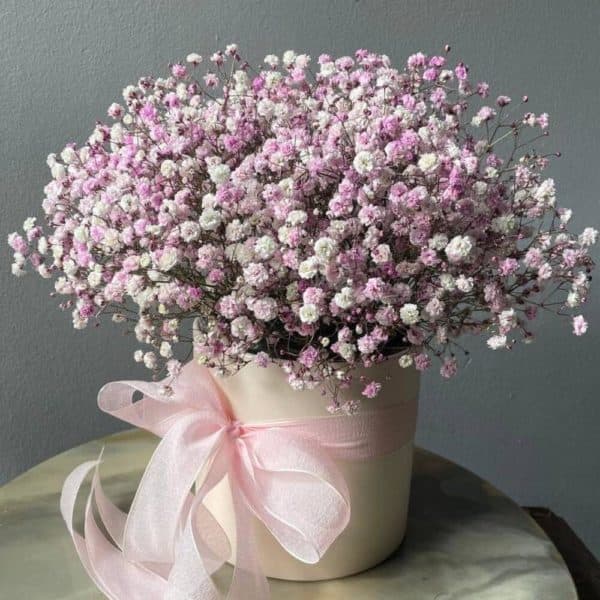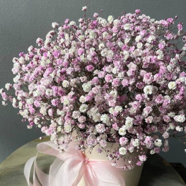 Гипсофила – 5 шт.Коробка шляпная – 1 шт.Оазис флористический – 1 шт.