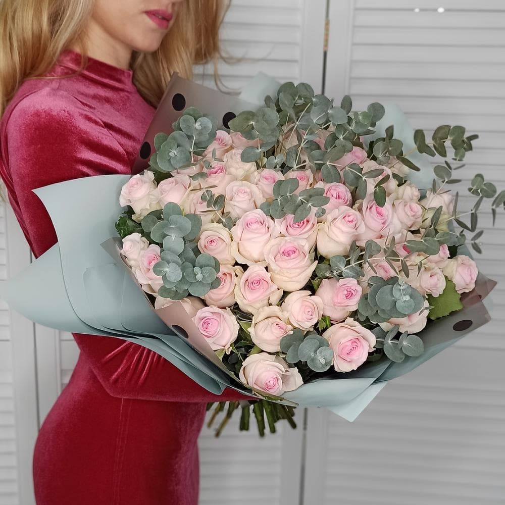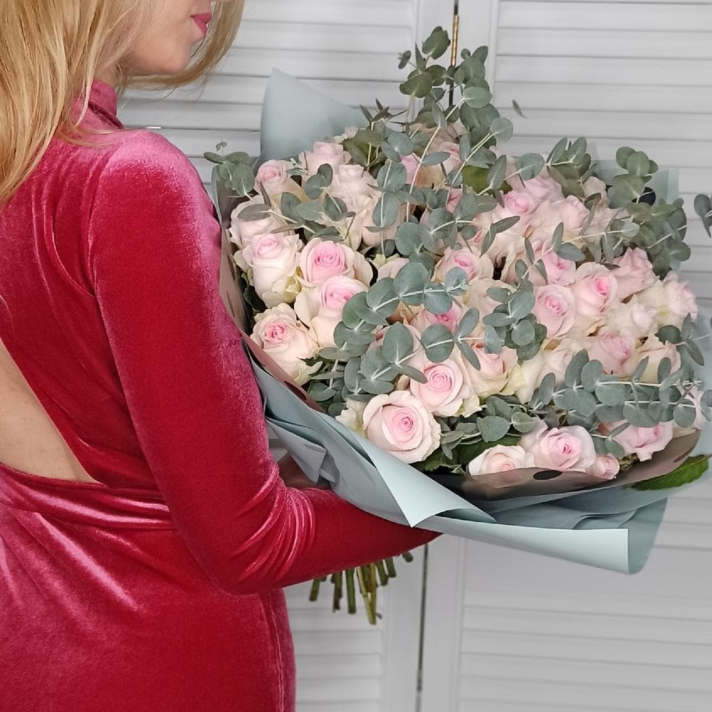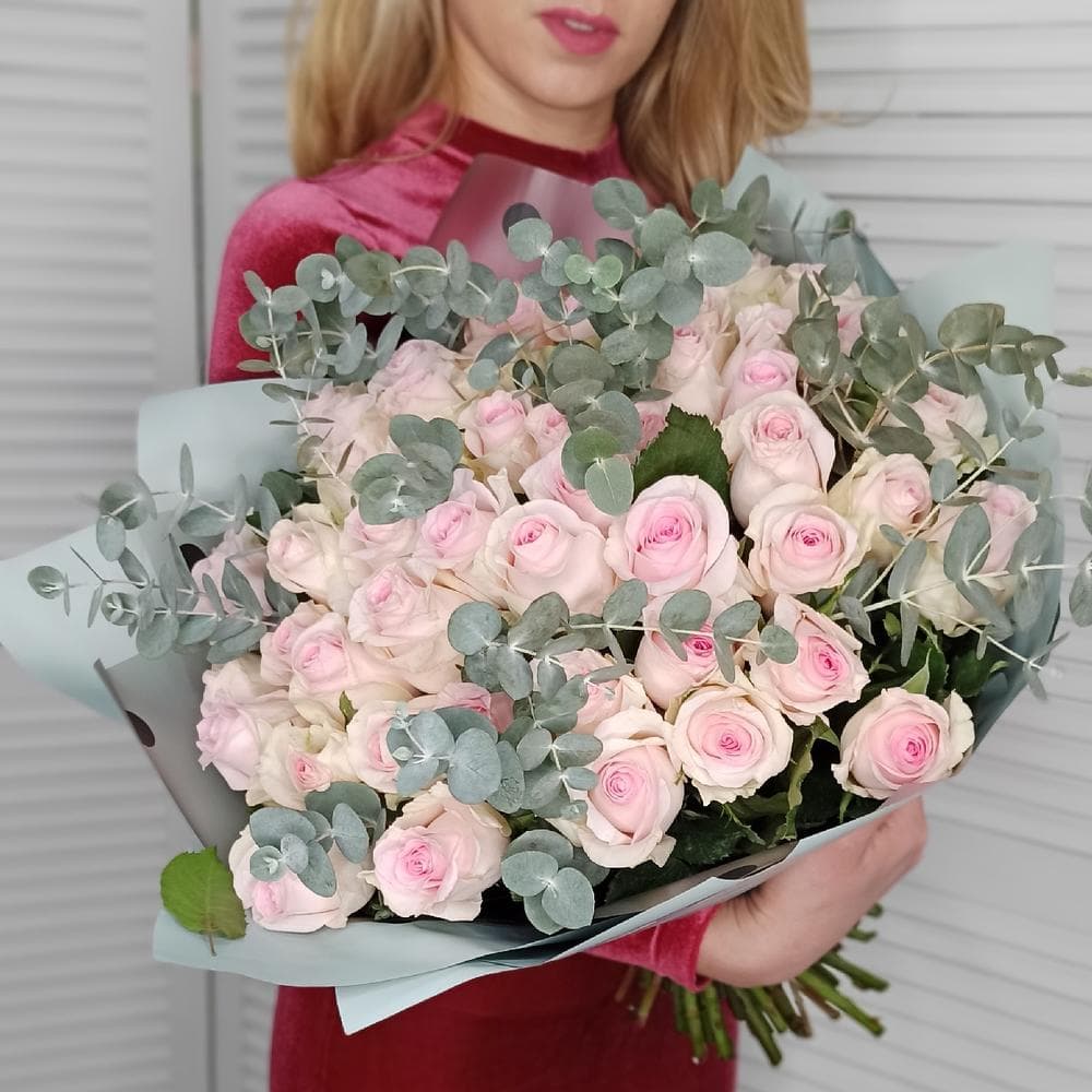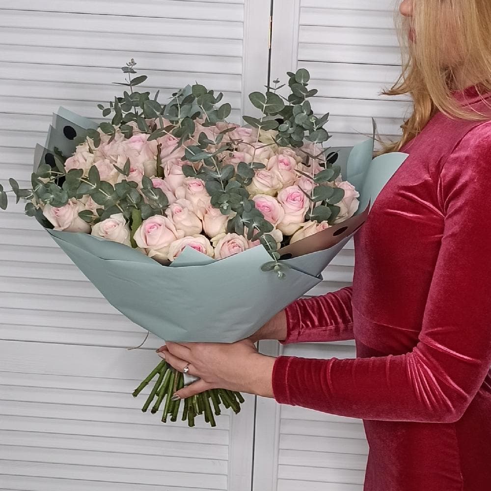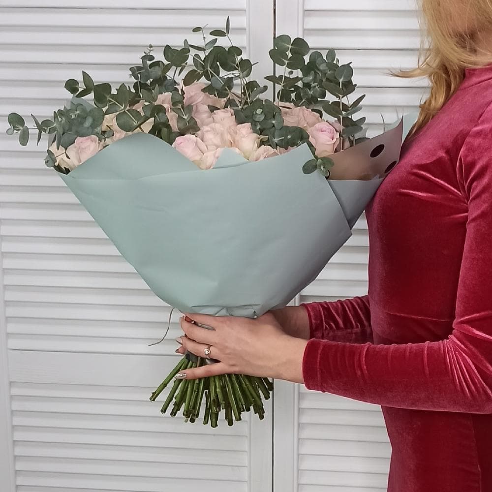 Роза - 51 шт.Эвкалипт Baby Blue - 5 шт.Крафт упаковка - 5 шт.