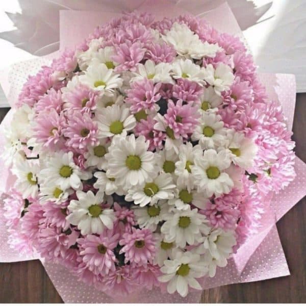 Хризантема кустовая - 15 шт.Упаковка дизайнерская - 1 шт.Лента атласная - 1 шт.