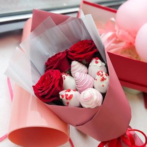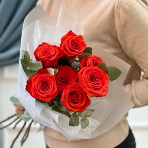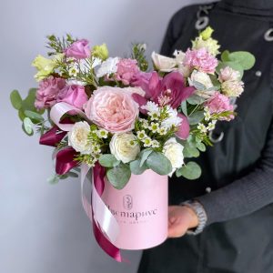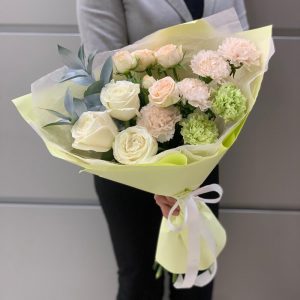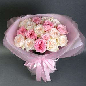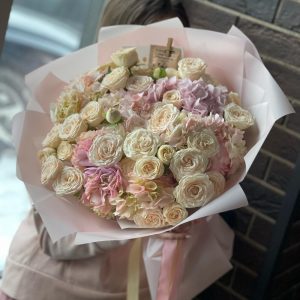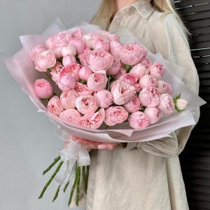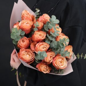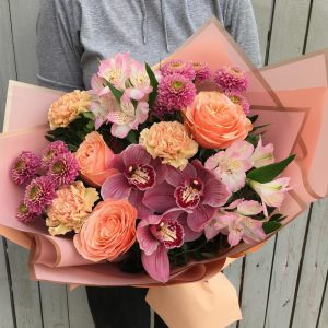Букет с пионовидными розами и орхидеей Цимбидиум