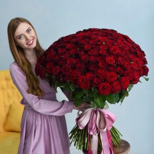 Букет из 101 алой розы 60 см