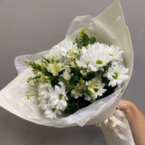 Букет из 9 белых одноголовых хризантем