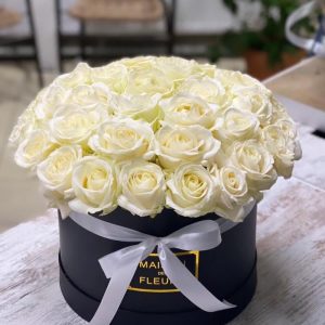 Розы белые в шляпной коробке