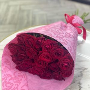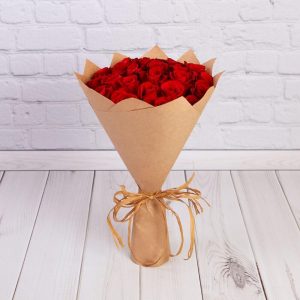Букет из 25 красных роз в крафте