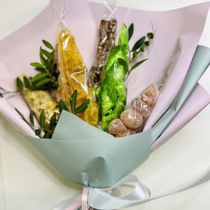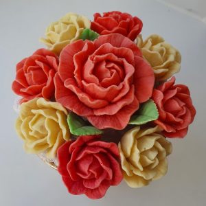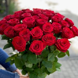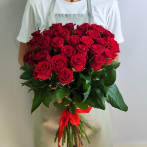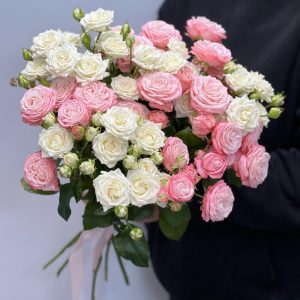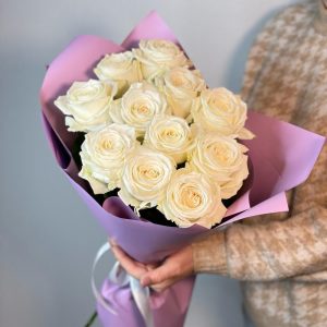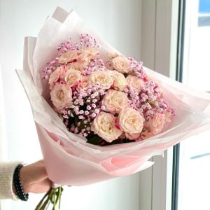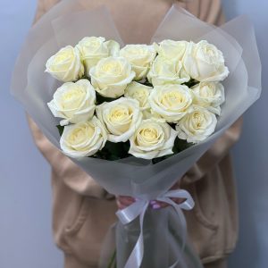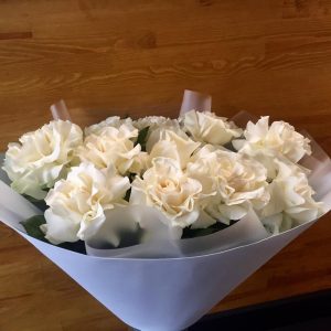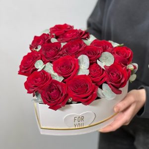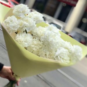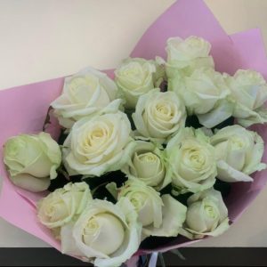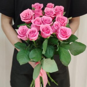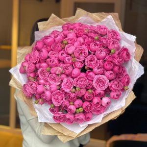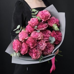 15 пионовидных роз Кантри Блюз с эвкалиптом