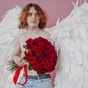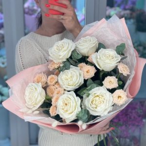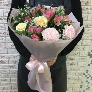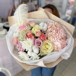 Букет из 13 разноцветных гербер в дизайнерской упаковке