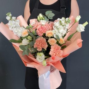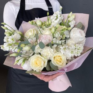 Букет с розами и эустомами – «Пудра»