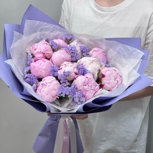 Розовые пионы со статицей