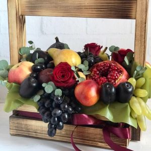 Свежие фрукты и Цветы в деревянном ящике