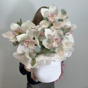 Коробочка с орхидеей и эвкалиптом