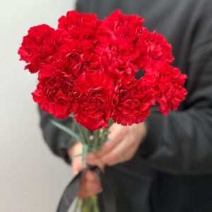 Гвоздика красная с атласной лентой