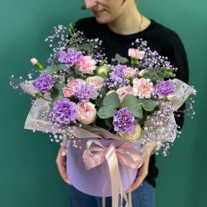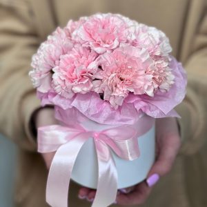 Коробка с розовой гвоздикой
