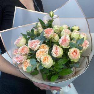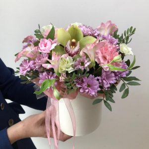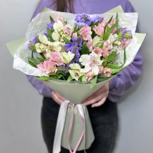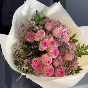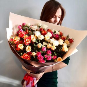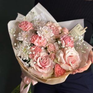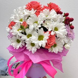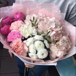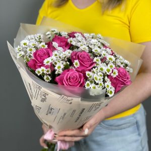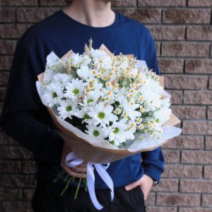 Букет из белых кустовых хризантем и ромашек, букет 00099