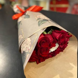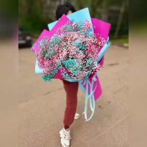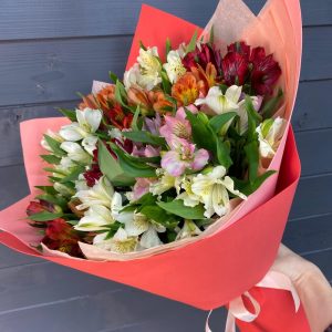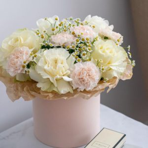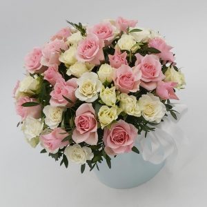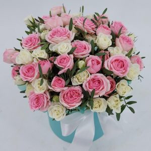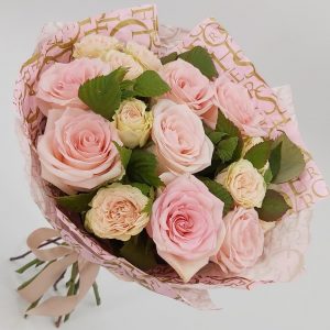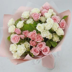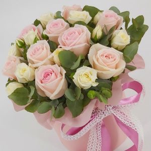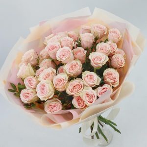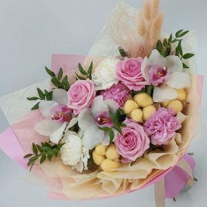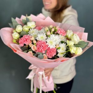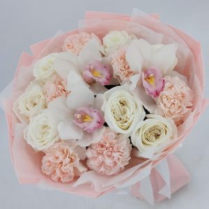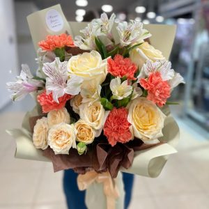Букет из роз, эустомы и гвоздик Пичи Лав