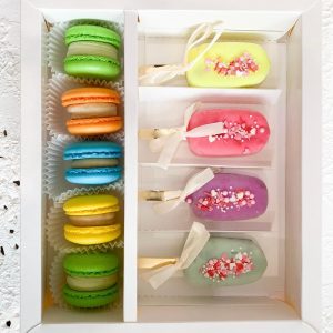 Подарочный набор макарон и чизкейков на палочке