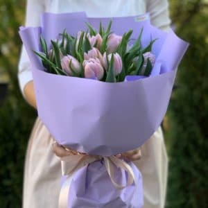 Букет 15 лиловых пионовидных тюльпанов