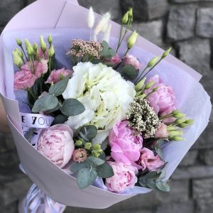 7 Пионов с эвкалиптом в дизайнерской упаковке