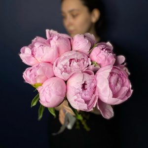 Букет из 9 пионов под лентой