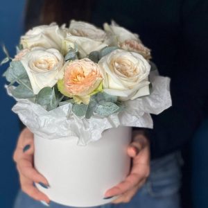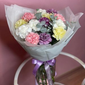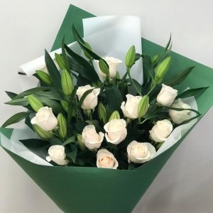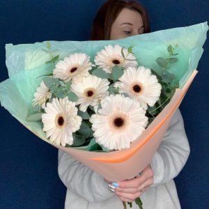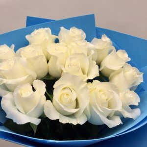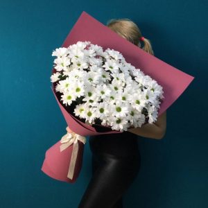 Букет из 15 белых хризантем в дизайнерской упаковке
