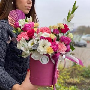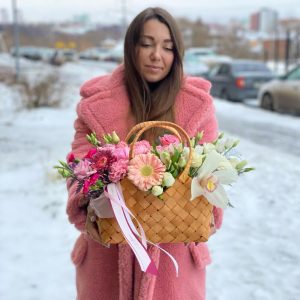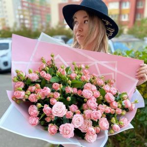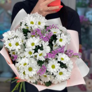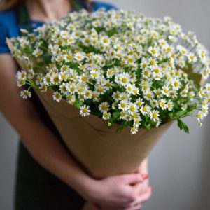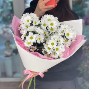 Монобукет из мелкой ромашки-танацетума, упаковка крафт