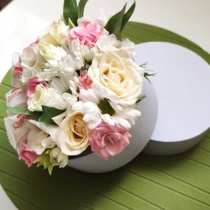 Пионовидная кустовая роза в шляпной коробке