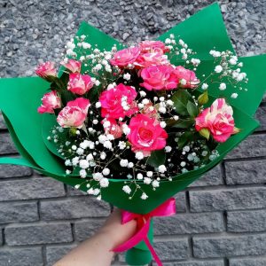 Букет из кустовых роз и гипсофилы