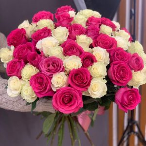 Букет из 51 Эквадорской розы бело-Розовый микс