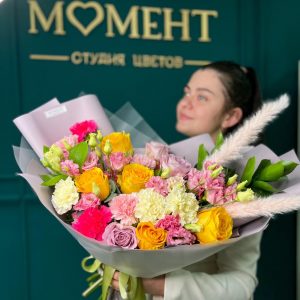Букет из сухоцветов с лавандой, диаметр 12 см
