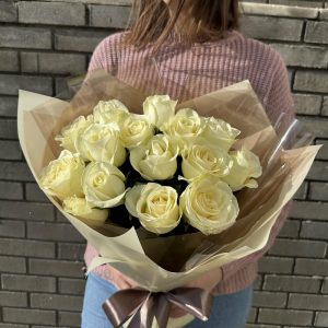 15 Белых роз в дизайнерской упаковке