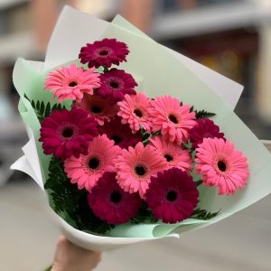 Букет из двух сортов мини-гербер с зеленью