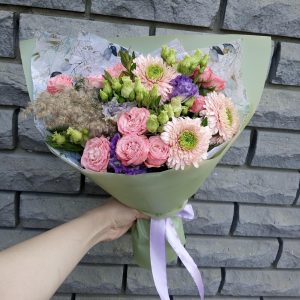 Букет из диантуса и гипсофилы