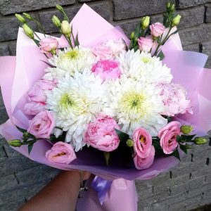 Нежный букет с пионами и эустомой